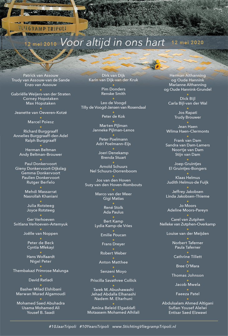 Woensdag 12 mei 2010, de Nederlandse ambassade in Tripoli meldt het ministerie van Buitenlandse Zaken (BZ) om 9.05 uur dat er een vliegtuig is neergestort met misschien wel Nederlanders aan boord. Ambassadepersoneel reist meteen af naar het vliegveld om informatie ter plaatse te krijgen. Rond 10 uur verschijnen in de media de eerste berichten over een vliegtuigongeluk bij Tripoli. Zo rond 11.00 uur wordt duidelijk dat er waarschijnlijk tientallen Nederlandse slachtoffers zijn.